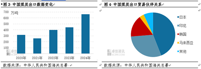 出口方面:2024年中国累计出口煤炭665万吨,煤炭出口主要贸易伙伴为日韩和印尼