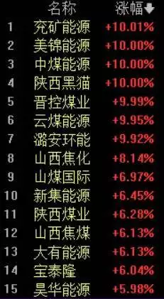 早盘煤炭板块集体大涨,截至发稿板块大涨超6%,兖矿能源、美锦能源、中煤能源、陕西黑猫、晋控煤业、云煤能源、潞安环能涨停,山西焦化涨超8%,山煤国际、新集能源、陕西煤业、山西焦煤、大有能源、宝泰隆等涨超6%。