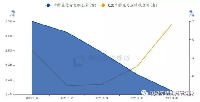 从甲醇供需来看,供应端的压力在不断的增大。首先是进口,伊朗地区的甲醇装置基本完全恢复,3月份伊朗的发运量达46万吨左右,环比2月份提升近15万吨,叠加部分东南亚货源的转港,4月份国内沿海的进口量将有可能达到115万吨左右,因此在4月份港口刚需的状态下库存将会有明显的提升。内地近期也面临较大的压力,宝丰甲醇240万吨装置在3月底投产,据市场了解目前产量维持在3000吨/日,4月份整体的负荷维持在5-6成,对内地下游和贸易商补库的情绪有较大的压力。虽然MA2305合约近期随着空头的主动减仓而小幅上涨,但基差依旧偏弱。