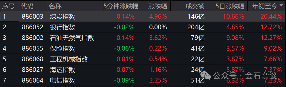 大家都知道,今年涨势最好的就是红利高股息股票,石油煤炭银行则是其中的佼佼者,其中煤炭今年以来更是暴涨2%,引领沪深所有板块。