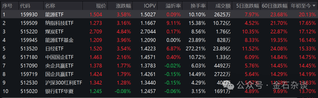 大家看今年的基金走势,好家伙,涨幅最高的不是失去30年后新高又新高的日经ETF,也不是“定投纳指”的纳指科技ETF,而是能源ETF,是煤炭是石油。
