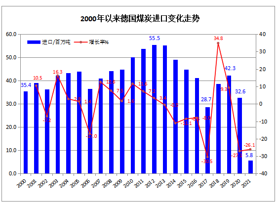 2月份,德国煤炭进口量大幅下降,当月煤炭进口量为242万吨,同比减少26.9%,环比下降28.0%。其中,动力煤进口115万吨,同比下降47.6%;炼焦煤进口101万吨,同比增长18.6%。