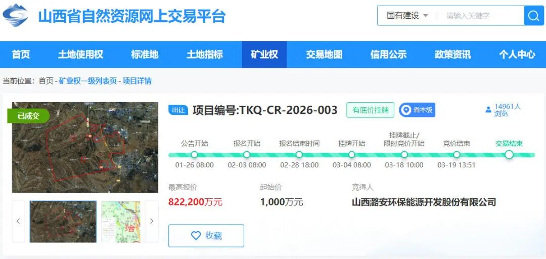 3月19日,山西潞安环保能源开发股份有限公司(以下简称“潞安环能”)以82.22亿元的价格竞得山西省襄垣县苏村区块煤炭探矿权,创下今年省内煤炭探矿权成交价新高。